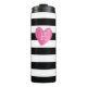Vår chic har strimlat tumlare behållor din favorithett eller kall i stil! Utformningen har fet, bred rand i svartvitt med ett enda monogram på en ljuskänslig rosa som illustration med mycket snabba vattenfärger.