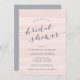 Eleganten och den moderna vattenfärgen inbjudningskort för möhippan har en vattenfärg som tvättar bakgrund i ton på färgnyanser av rosa, accentuerad med kalligrafi av chicen och serif-bokstäver i dammig skiffer. Koordinerar objekt i trendig och grått som finns i vår Chiffon-samling.