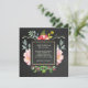 De här vackra bröllopsinbjudningarna från chicen visar på en underbar blomdesign för vattenfärgade peonymer. Din bröllopsinbjudan är innesluten i en mittkvadrat med faux guld foil. Kortets bakgrund har ett blekt svart kritutseende. Vi har använt mönster från LABFcreations.