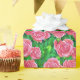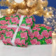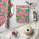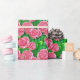 Omslagning papper i mönster av ro, i skuggor av djup fuchsia till rosa av pastellerna, mot bakgrund av grönt löv