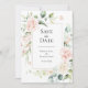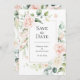 Romantisk vattenfärgsblomma blommor med skript gör ett vackert "spara datumet" för din speciella rosa.