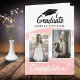Rosa Watercolor Student Grattis 2 Photo Card. Trendig rosa vattenfärgsrand. Anpassa med 2 foton och namn i student på framsidan och meddelandet inuti kortet eller radera det.