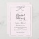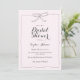 Fira den brud som ska skaka med denna vackra rosa inbjudningskort för möhippan som har en vit, handdragen båge och en snabb utformning av inslag. Perfekt för att lägga till en aning lekfull elegans till din speciella händelse. anpassadets inbjudan kommer att charma dina gäster och ange perfektens ton för ett minnesvärt firande.