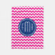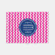 Rosa och vit geometrisk chevronreflektor mönster med monogram och blå färg-accent.