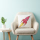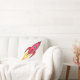 Rosa & White Cute Retro Rocketship Tecknad Design Kudde