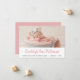 Klassisk flickas födelsemeddelande som visar baby bild med namn nedan i rosa upprätt, kortskript med kondenserad återskrift på vit bakgrund, med utrymme för födelsedatum och födelsetid, vikt och längd under i grått sans serif font.Kortets baksida är en matchande skade av rosa.