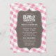 Inbjudningar: Södra land inspirerade till rustik Baby Shower-inbjudningar designade med anpassningsbarnas tryckta duschdetaljer i ljust och vitt på en illustration av en brun canvas struktur, på en rosa och vit gingham mönster. Matchande tackkort (artiklar som köpts separat):