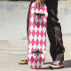 Geometrisk Rosa och vit Färg Harlequin Diamond Shapes Mönster Design