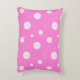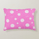 Rosa och vit giffelkudde för stickning av fläkt. Denna söta rosa kudde trycks med ett modernt mönster av bollar av ull och stickande nål.