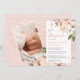 Rosa | White Peony Blooms Girl Baby Photo Baptism Inbjudningar