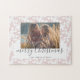 Rosa och White Rococo Mönster God jul Script Photo Puzzle. Rosa och vit klassisk rococo mönster. Lägg till foto, text och gör en julklapp för trendig och chic.