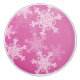 Fint, modernt och trendig mönster med vit snöflingor på rosa. Den har en rosa bakgrund och är försedd med vit snöflinga mönster som täcker yta. Snöflingor är detaljerat med bra linjer och skapar en intrikat snöre-liknande effekt. Hela stil är charmerande och glatt, med ett tydligt helgdag tema. Perfekt julklapp till din älskade.