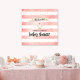 Cute rosa och vit rand-bakgrund för att fira en flicka-temad babydusch. Tan bunny visas precis ovanför honoree namn som mall. Små silver och guld stjärnornas sprinkler överlappar varandra överst kant, som konfektyrerna faller ner. "Välkomstext" finns på en banderoll.