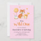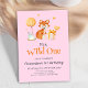 Rosa Wild One Baby Flicka Första Födelsedagen Inbjudningar