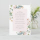 Inbjudan till rosa Wildblombröllop. Den här inbjudan från elegant bröllop innehåller vackra, handmålade vattenfärger, rosa vår lilies, dammiga blå sommarblommor och sage botaniska greer.