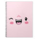 Rosa Winking Kawaii Ansikte bärbar dator Anteckningsbok Med Spiral