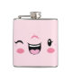 Cute and roligt Rosa Winking Kawaii Ansikte Flask. Underbara för barn och vuxnor.