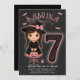 Tittar du om en roligt för att fira en sagofödelsedag? Den här snygga Halloween-födelsedagsinbjudan har en söt liten häxa i en svart och rosa som håller hennes pumphink bredvid ett vismiskt spindelnät nummer 7. Perfekt för en flickas Halloween fest, den här inbjudan är stämningen för en natt med kostymer, godis och roligt. Det är idealiskt för alla som planerar en Halloween-temad födelsedag - oavsett om du är värd hemma, i en party hall eller till och med utomhus med trick eller Behandla virus. Lägg helt enkelt till din evenemangsinformation, så har du har ett vackert redo att med familj och vänner. Vad gör det speciellt? Den unika mixen av söt och pookisk design - rosa fladdermus, spindelaccenter och girigtemat - skapar ett festligt men lekfullt utseende som fungerar perfekt under för barn födelsedagskalender i oktober. Gästerna kommer att veta att de är i magi så fort de öppnar inbjudan!