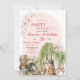 Rosa Woodland Party Animals Flickfödelsedag Inbjudningar