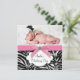 Rosa Zebra Flicka Photo Christening Inbjudningar