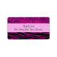 Rosa Zebra, Glitter Zebra, Zebra tryck, Rand Adressetikett