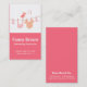 En illustration av barnkläder (dvs. haklapp, sockor, ranka) som hänger på en klädstreck med ett rosa fågelanseende på ett av, fixerar att sjunga lyckligt. Användning av blommigten och pricker mönster, och rosan och den orange färgintrigen gör det en elegant, yet den slå visitkorten för affärer, som är i bebis, & ungekläder sälja i minut, lika babysitters för barnomsorg, partyplanners, ungeunderhållning eller några andra släkta affärer för bebis & ungar. Rosa bakgrund kan ändras till din färg av primat genom att använda bakgrundsalternativet. Designat vid rostigt klotter.