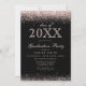 Rosabränd glitter svart examensinbjudan. Denna eleganta design har trendig glittrande konfetti. Anpassa denna anpassade design med dina egna detaljer och fotografi.