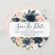 Rosabränd & Marinblå Akvarellblommor Modern Bröllo Spara Datumet