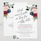 Denna rosabränd, rosafärgade och marinblå inbjudan är flexibel för antingen en Drive By eller utomhusbröllopsfest. Den ger gästerna möjlighet att stanna ett tag och besöka eller köra förbi och önska bruden lycka till! Inbjudan har en spray av rosafärgade, rosabränd och marinblå blommor med gröna accentkvistar. Den kan också användas för en parfest, bröllopsfest eller förlovningsfirande.