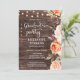 Skicka dina gäster en vacker examensfestinbjudan med detta trä & strängljus med rosabränd och persikorosa blommor kort.