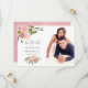 Rosabränd rosa och roséguld ros vattenfärg bröllop spara datum fotokort med accenter av salvia grön.