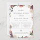 Akvarell blomster ram i nyanser av rosabrunt rosa och plommon-lila, middagsinbjudan till bröllopsrepetition. Chic och modern typsnittsdesign. Baksidan av kortet har en enfärgad, dämpad dammig plommon-lila färg.