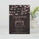 Rosabrunt rustik trä och lampor Förlovningsfest Inbjudningar