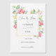 Denna romantiska och chic bröllopsdesign har en etikett med guldbård omgiven av en frodig bukett av mjuka pastell rosa och elfenbensvita rosor och salvia gröna blad. Inkluderar redigerbara textfält och eleganta, flödande anpassade kalligrafiska textgrafik.