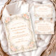 En romantisk blandning av mjuka rosafärgade och persikafärgade rosor arrangerade inom skulpterad elfenbensscrollverk, vilket skapar en elegant barockram med tidlös charm. Ömtåliga lavendelkvistar och dämpad grönska tillför djup samtidigt som paletten hålls luftig och förfinad. Den varma gyllene typografin kompletterar de blommiga tonerna och ger designen en graciös europeisk charm. Perfekt för en klassisk, feminin fest med en lyxig men ändå mjuk estetik.
