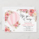 Rosafärgade blommor varmluftsballong flicka födels inbjudningar