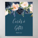 Denna rosafärgade och marinblå blommor blå kort och present skylt är perfekt för ett blomsterbröllop eller bröllopsfest. Den klassiska och eleganta designen har moderna akvarell-marinblå och rosafärgade blommor på en tealblå bakgrund. Textraden längst ner på skylten kan anpassas med datumet, brudens och brudgummens namn eller ett kort meddelande som "Tack". Denna skylt kan användas för ett bröllop eller någon annan händelse eller fest.