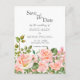 Vårt Rosa botaniska Bröllop spara datum-kort är ett underbart sätt att fira och er glädjande händelse. Den här vackra designen har en mängd vackert rosa ros och vacker grey som ger perfekten för vilken trädgård som helst, bröllop eller evenemang.
