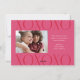 Budgeterad Rosa Modern XOXO-Helgdag på Alla hjärtans dag-kort med rosa och röda X- och O-kort och ett skript namnteckning namn. Baksidan har ett andra foto med plats för ditt meddelande.