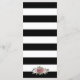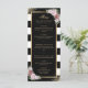 Elegant, svart och vit stripe blommigt bröllop-meny med blommor av rosa och grön inramning av detaljerna i bröllop i en guld ram mot en svart och vit bakgrund med guld konetti. Matchande objekt är tillgängliga.