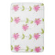 Ett designer-badmatt med ljusa shock rosa fuchsia blommor och kalk grönt på vitt. Vackert badrum matta, eller sovrumsmat.