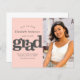 Se till att alla dina vänner och släktingar kan fira student:s milstolpe studenten! Skicka det häpnadsväckande, enkla, moderna fotot av personligen "Spara datum" för ett evenemang att minnas. Fet, grafik, mjuk grått-typografi täcker över en rosa-bakgrund. Lägg till ett foto som du vill ha på högerna. Anpassa anpassningsbarna till student namn, klassår och datum. Ditt meddelande om anpassningsbar och en ikon för studentmössa för rosa visas på baksidan. Matchande inbjudningskort, tackkort, toppar, blöjor, tallrikar och andra studenten-godis finns också i detta trendig och i denna snyggt. Garanterad att lägga till roligtar till snyggten vid deras särskilda tillfälle! Skriv bara in namn, skolår och klassår, datum, anpassningsbar, lägg till foto och du kan enkelt anpassa budgetanslagskortet "Spara datum" för studenten. Var snäll och meddela mig med eventuella frågor eller förfrågningar.
