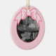 En rosa pilbåge smyckar ett enkelt cirklar den formade ramen, både pilbågen, och ramen täckas med liten polka dots.