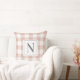 Rosapink-vit Gingham-ruta Monogram Initial Kudde