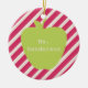 En gåva för lärare som presenterar en illustration av ett grönt äpple över en bakgrund av diagonala randar för shock rosa.