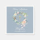 Med en delikat akvarellblommig girland är denna snygga dop- eller dagningservett personifierbar med dina speciella evenemangsupplysningar satta i typsnitt på en dammig blå bakgrund. Designad av Thisisnotme©