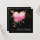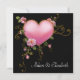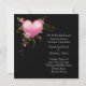 Rosa rosor och rosa hjärta med guldspiraler svart bröllopsinbjudan. Anpassa med ditt val av teckensnittsstil och färg.