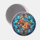 The Rose Floral Stained-Glass Look Magnet features a floral design in subtle blues, rose, yellow and dark greens with a stained-glass look.