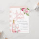 Elegant och det moderna inbjudningskort för möhippan för vin älskare har ro accenter i vit, och fuchsisk rosa med lush grey peeking out, och flaska och glas rosé vin. Anpassa med din möhippa i elegant och grått-blå typografi som accentueras med handskriven stil-kalligrafi och anpassa flaskan vin med parets initialer. Kort tillbaka till rosa och vitt rand.