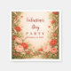 An intricate Valentine’s Day party design inspired by antique floral wallpapers and Victorian-era ornamentation. Lush red and coral blooms, scrolling greenery, and framed heart motifs surround a warm parchment center, creating a rich, romantic composition with a timeless feel.